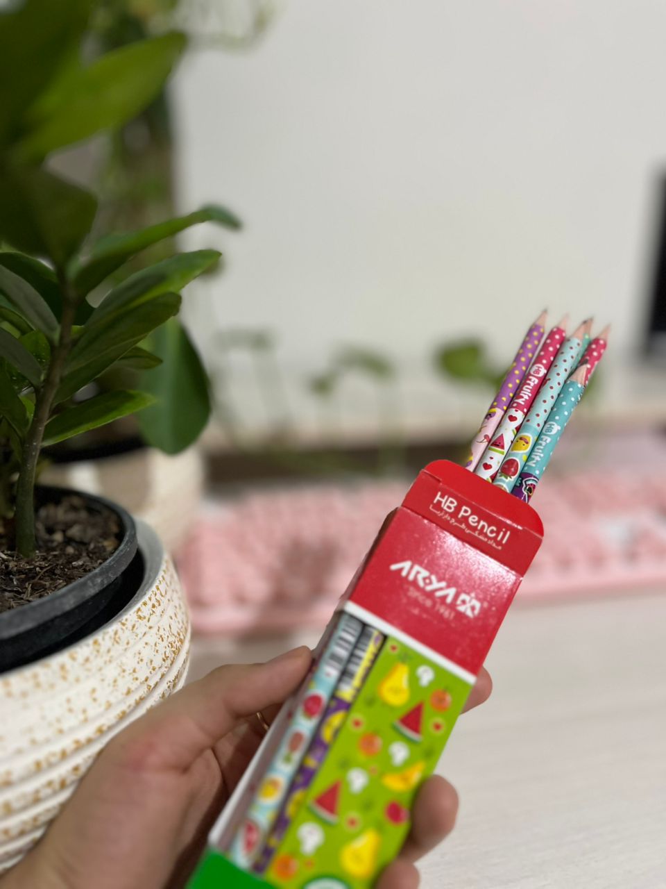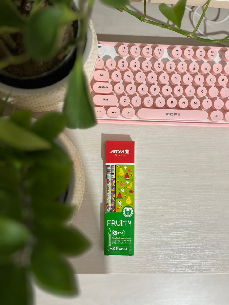 مداد مشکی طرح دار میوه ای آریا، با مقاومت شکنندگی بالا و تراش آسان. قیمت درج شده مربوط به هر یک عدد می باشد.