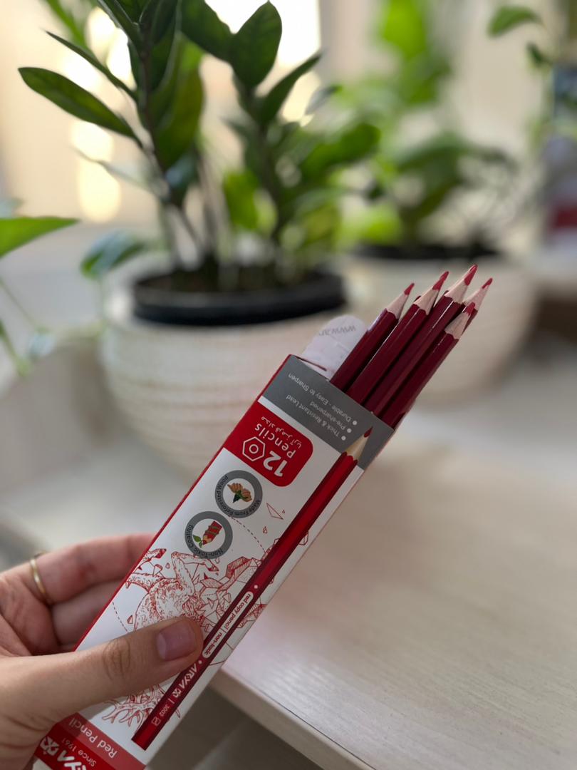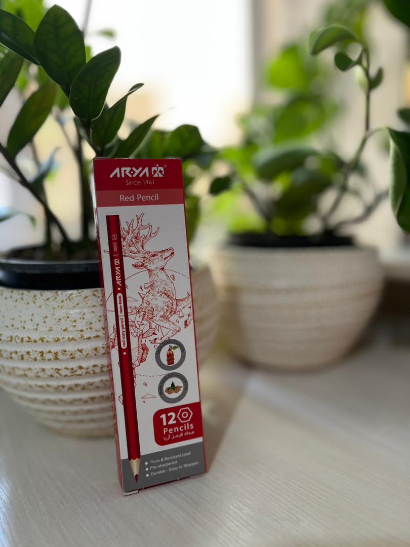 مداد قرمز آریا، با مقاومت شکنندگی بالا و قابلیت تراش آسان.